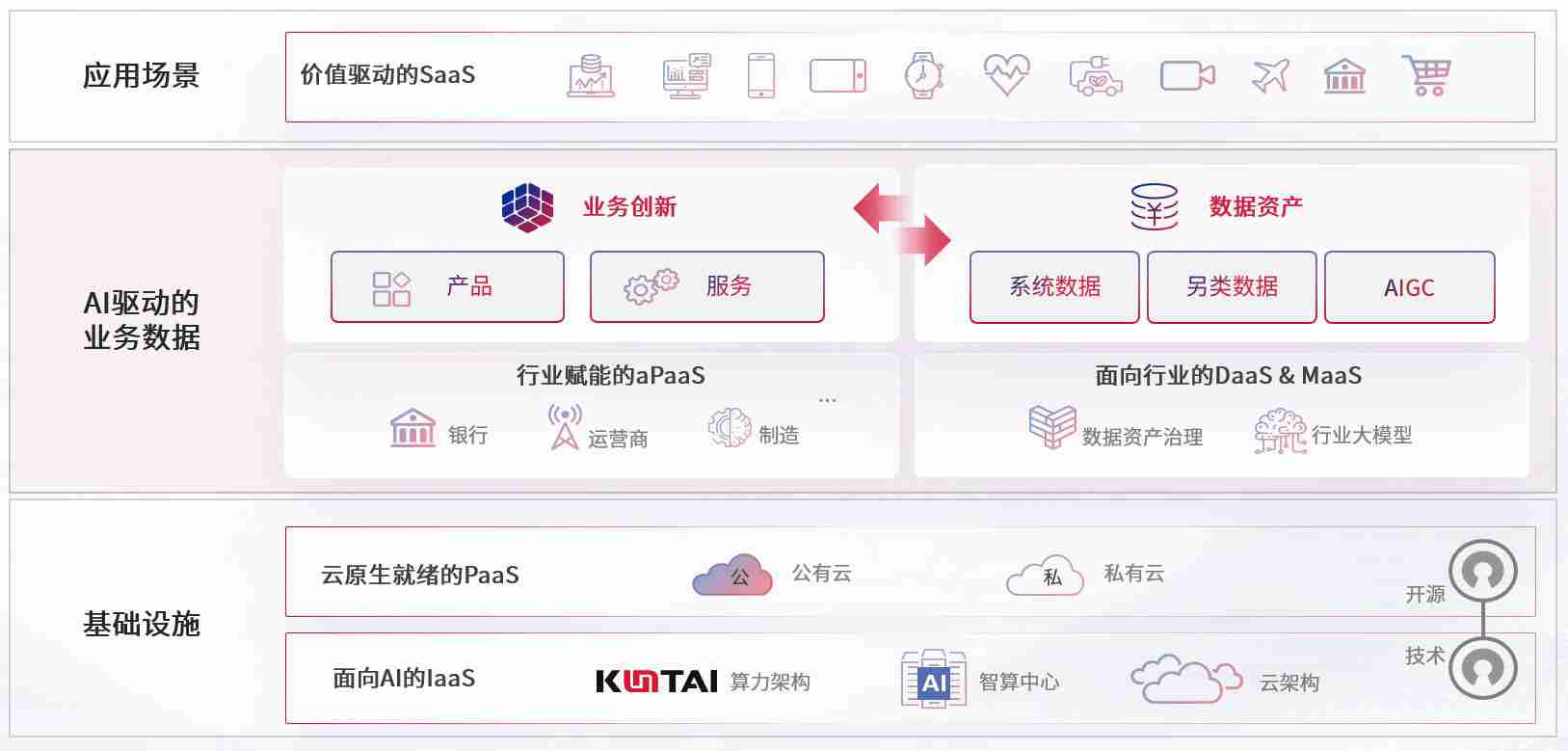 数字时代,,围绕企业数字化转型的关键要素,,,,z6com·尊龙凯时数码开创性的提出数云融合战略和技术体系框架,,着力在云原生、、、、数字原生、、、AI原生和信创产业上架构产品和服务能力,,,为处在不同数字化转型阶段的快消零售、、、汽车、、、金融、、医疗、、、、政企、、、教育、、运营商等行业客户提供泛在的敏捷IT能力和融合的数据驱动能力,,,构建跨界融合创新的数字业务场景和新业务模式,,,,助力企业级客户建立面向未来的核心能力和竞争优势,,,全面推动社会的数字化、、、智能化转型升级。。